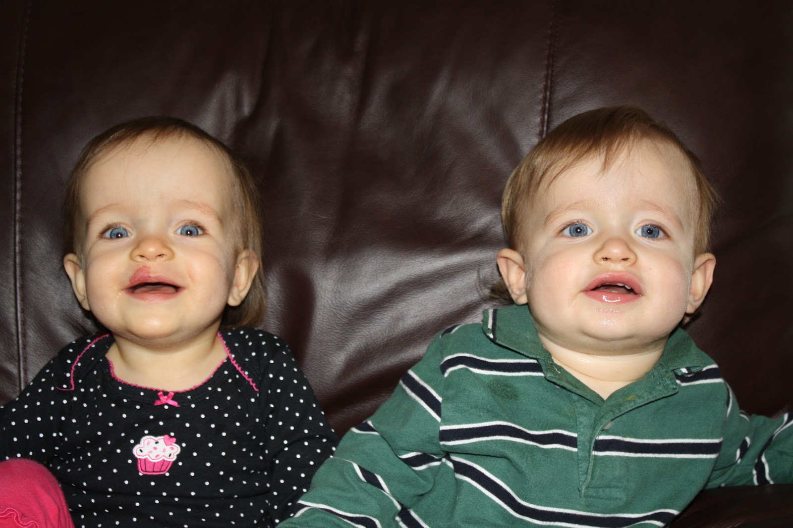 Henry and Hannah are 13 months old! It is so fun to see them discover new things. Hannah is really doing well walking. She isn't walking full time but she is getting more confident each day. She is also growing in her vocabulary. Her main words are: Momma, Dada, Uh oh, and she tries to say Cali.